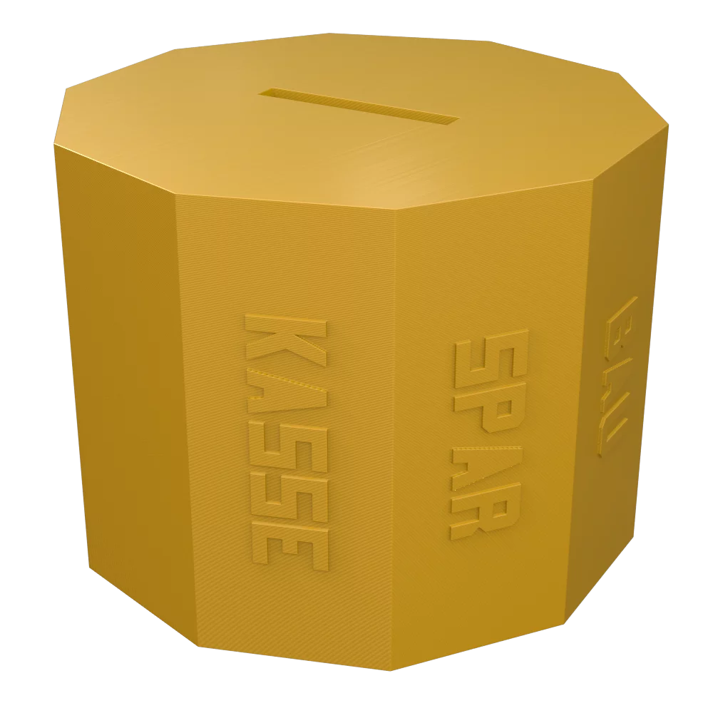 Die PAZL Box Aphrodite mit dem aufgedruckten Text "BAU SPAR KASSE" ist ideal zum Sammeln von Münzen und Geldscheinen für das nächste Bauvorhaben geeignet.