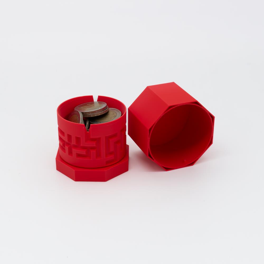 With its coin slot it is perfectly suited as savings box which can only be opened by those who have enough patience to find the exit of the maze. If you are not able to find the exit or if impatience and the excitement of what is hidden inside the box take over, there is a solution available for every maze