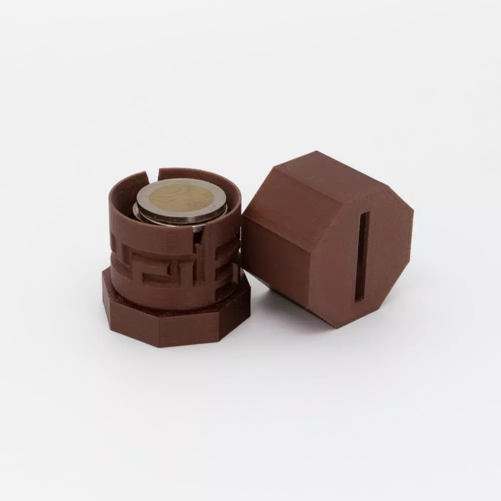The PAZL Box consists of two cylinders that fit into each other. One contains a maze which needs to be solved to open the PAZL Box, the other contains the according counter piece that needs to be navigated through the maze. If you are not able to find the exit or if impatience and the excitement of what is hidden inside the box take over, there is a solution available for every maze.