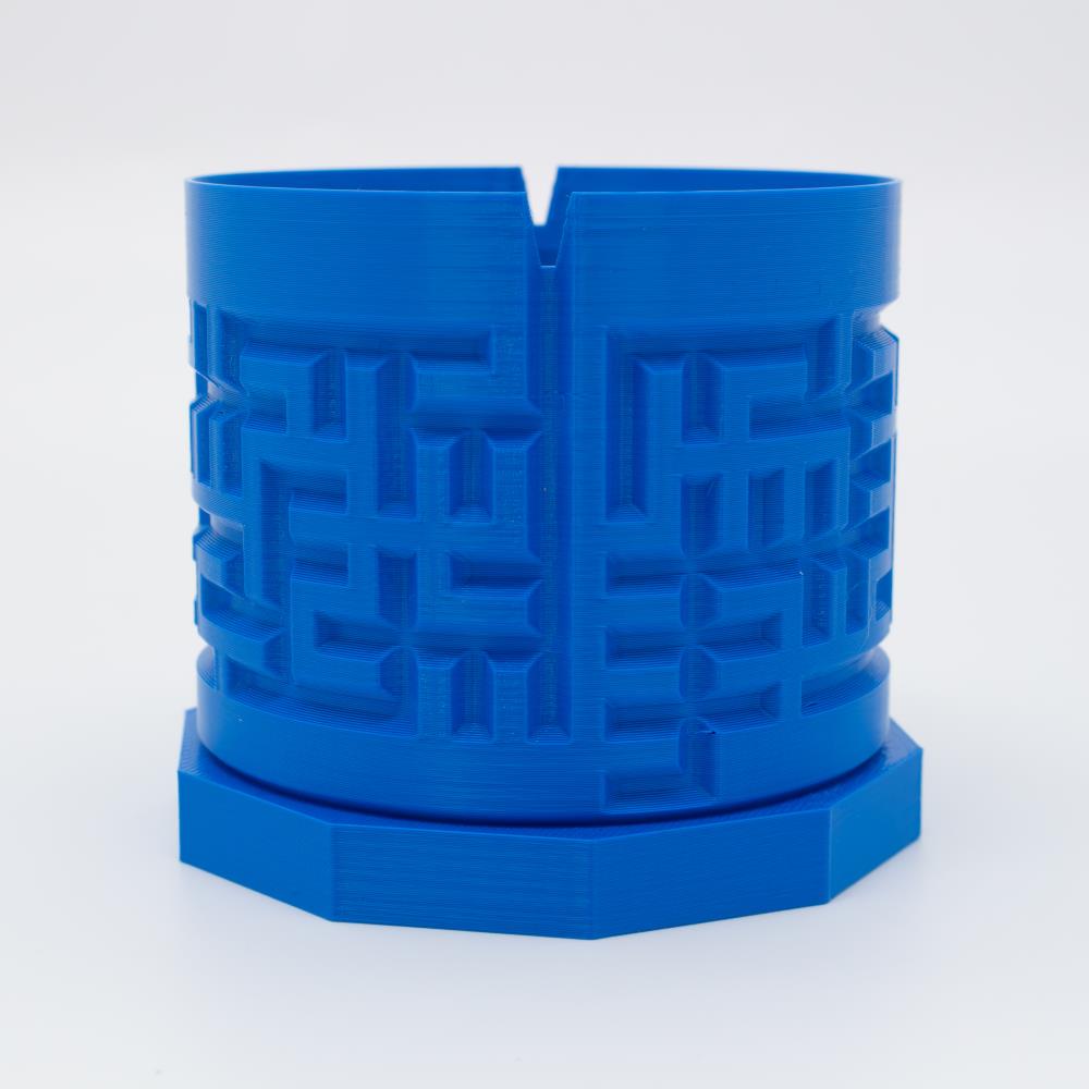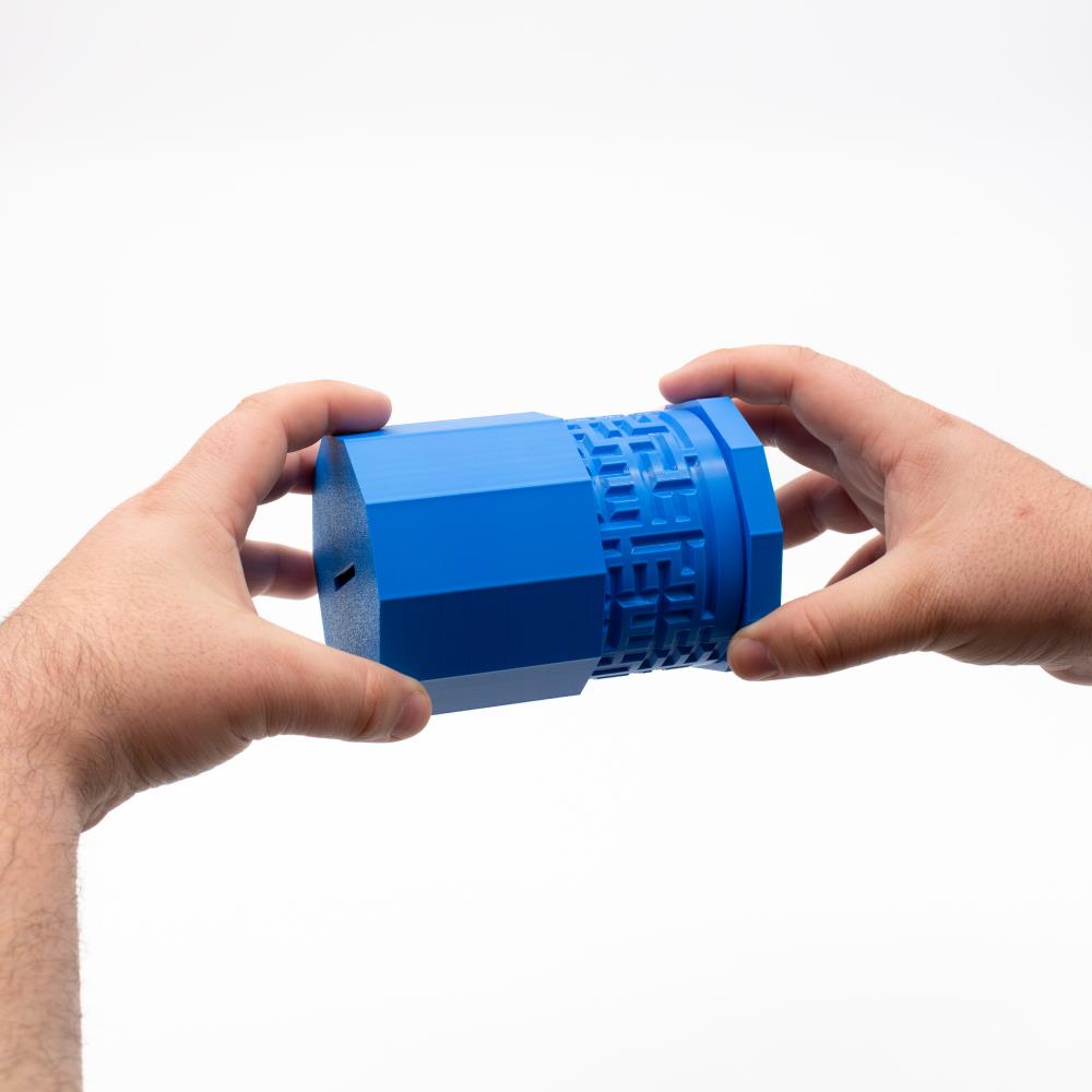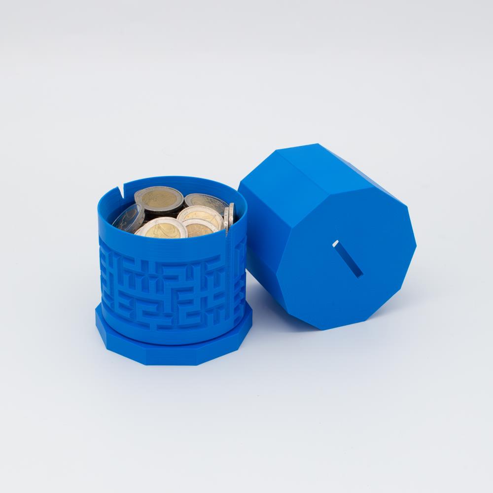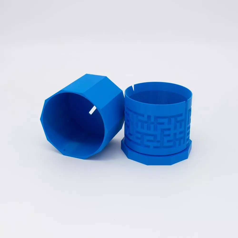 The PAZL Box consists of two cylinders that fit into each other. One contains a maze which needs to be solved to open the PAZL Box, the other contains the according counter piece that needs to be navigated through the maze. If you are not able to find the exit or if impatience and the excitement of what is hidden inside the box take over, there is a solution available for every maze.