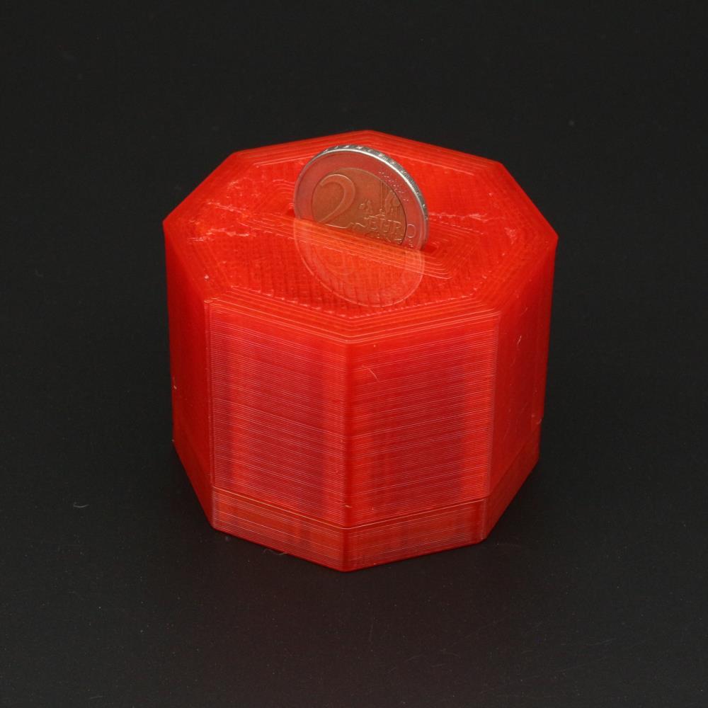 With its coin slot it is perfectly suited as savings box which can only be opened by those who have enough patience to find the exit of the maze. If you are not able to find the exit or if impatience and the excitement of what is hidden inside the box take over, there is a solution available for every maze